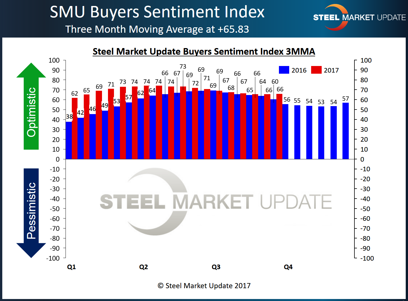 Overall, the indexes have remained at optimistic levels throughout 2017, though the small but frequent ups and downs may reflect steel buyers’ fluctuating uncertainty about market conditions. Hurricane Irma and the destruction it brought to the Southeast last week may also have been weighing on respondents’ minds.