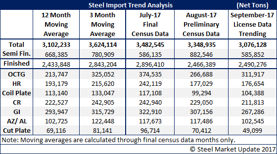 Compared to 2016, the first eight months of 2017 are averaging 559,890 net tons per month more foreign steel.