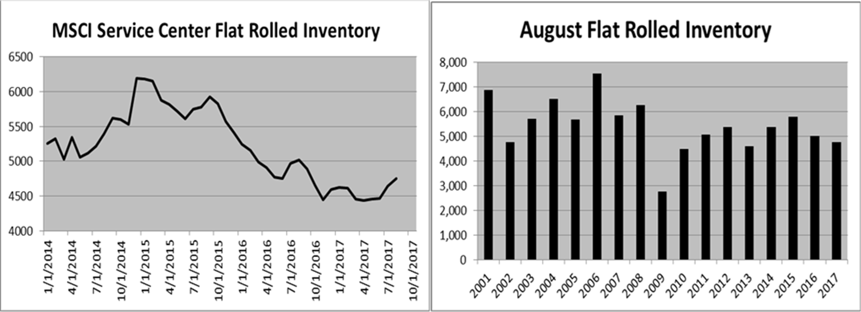 Let’s revisit the shooting pool metaphor. Throughout 2017, this article has had one big theme, “buy the dips.” Looking forward at the next couple “shots,” there are major developments to be considered on the supply front. First, there is the downtrending import license data that is expected to fall hard and fast due to initial concerns of the Section 232 investigation hampering import deals in June and July followed by crashing U.S. flat rolled premiums relative to R.O.W depressing deals in August and September. Second, there is up to 1.2m short tons of domestic flat rolled production to be pulled offline in Q4 due to planned mill maintenance and over 30m tons of Chinese production cuts planned over the next three months in an effort to fight pollution. Lastly, the MSCI, ISM and Durable Goods Reports continue to indicate depleted inventory levels at service centers and OEMs.
