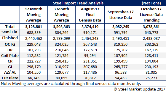 The trend for foreign steel imports into the United States continues to be right at 3 million net tons for the month of October.