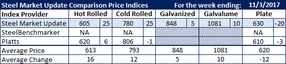 Galvanized .060″ G90, which is the benchmark used by a large portion of the steel indexes, was seen as $5 per ton higher by Steel Market Update.