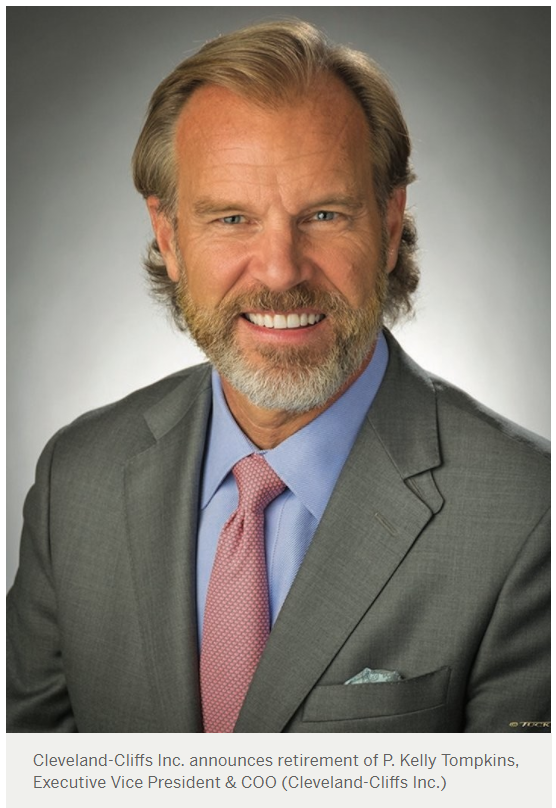 Cleveland Cliffs announced Friday that P. Kelly Tompkins, Executive Vice President and Chief Operating Officer, will begin his planned retirement effective Dec. 31, 2017.