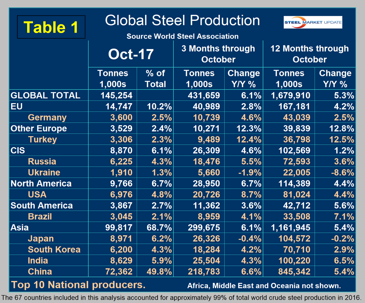 The World Steel Association Short Range Outlook for apparent steel consumption in 2017 and 2018 was revised and published on Oct. 14 (below).