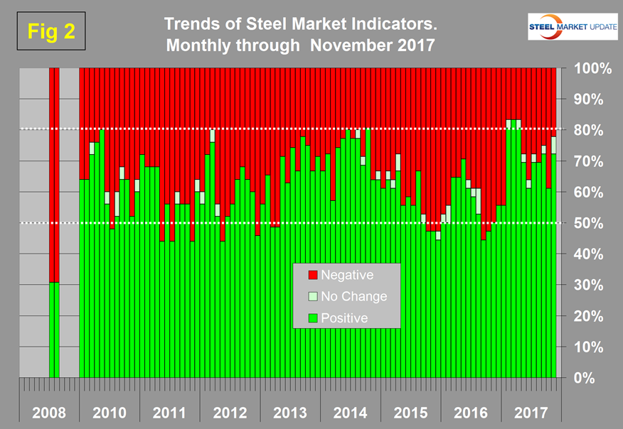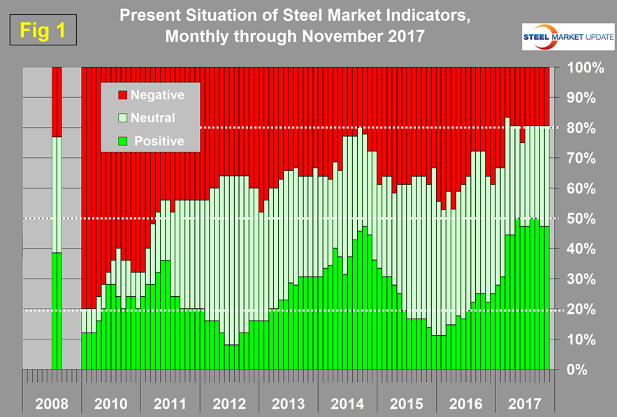 Steel Market Update’s steel market indicators show improved trends in the November data.