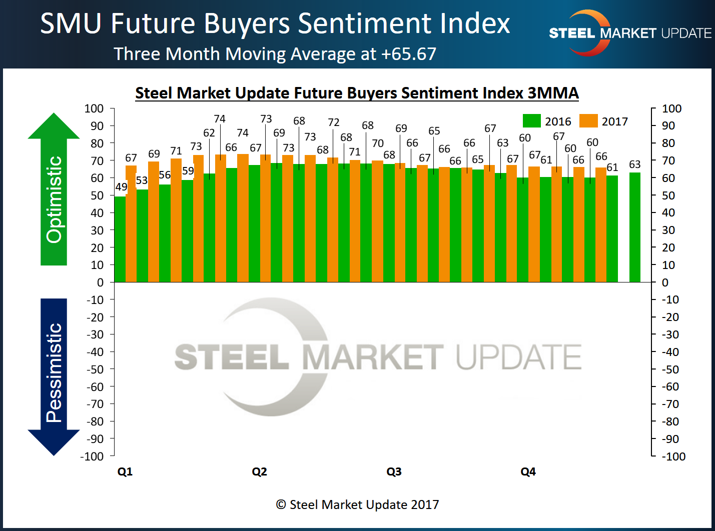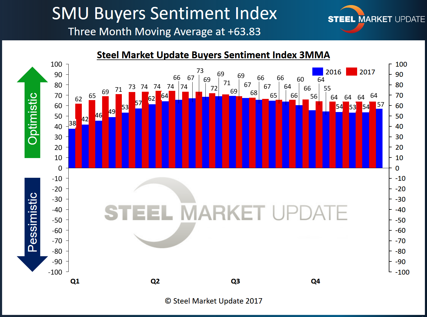 In general, steel buyers have been more optimistic, notably in the early and later parts of 2017, than in 2016, as illustrated by the charts.