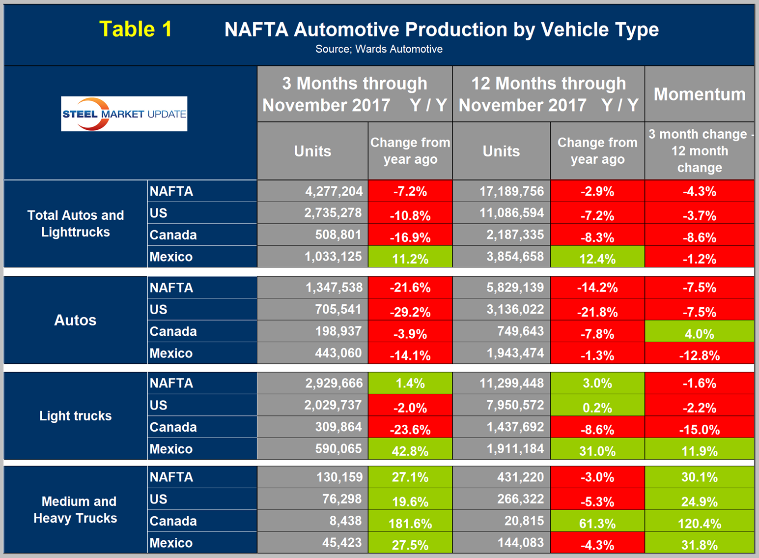 Through November, Mexico continued to take a greater share of light vehicle assemblies from the U.S. and Canada.