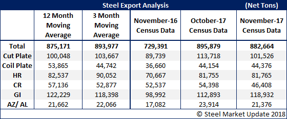 AIIS President Richard Chriss commented, “Canada’s economy, which was stagnating not too long ago, is now strong enough that the nation’s central bank is expected to raise interest rates in January, while the economic outlook for Mexico in 2018 has also improved. This bodes well for the future of steel exports to those countries. However, this would likely all change if the Trump administration blows up the North American Free Trade Agreement, as it has threatened to do. Scrapping NAFTA would have significant negative economic repercussions for all three participants in the trade pact, not the least of which would surely be a sharp decline in steel exports from the United States.”