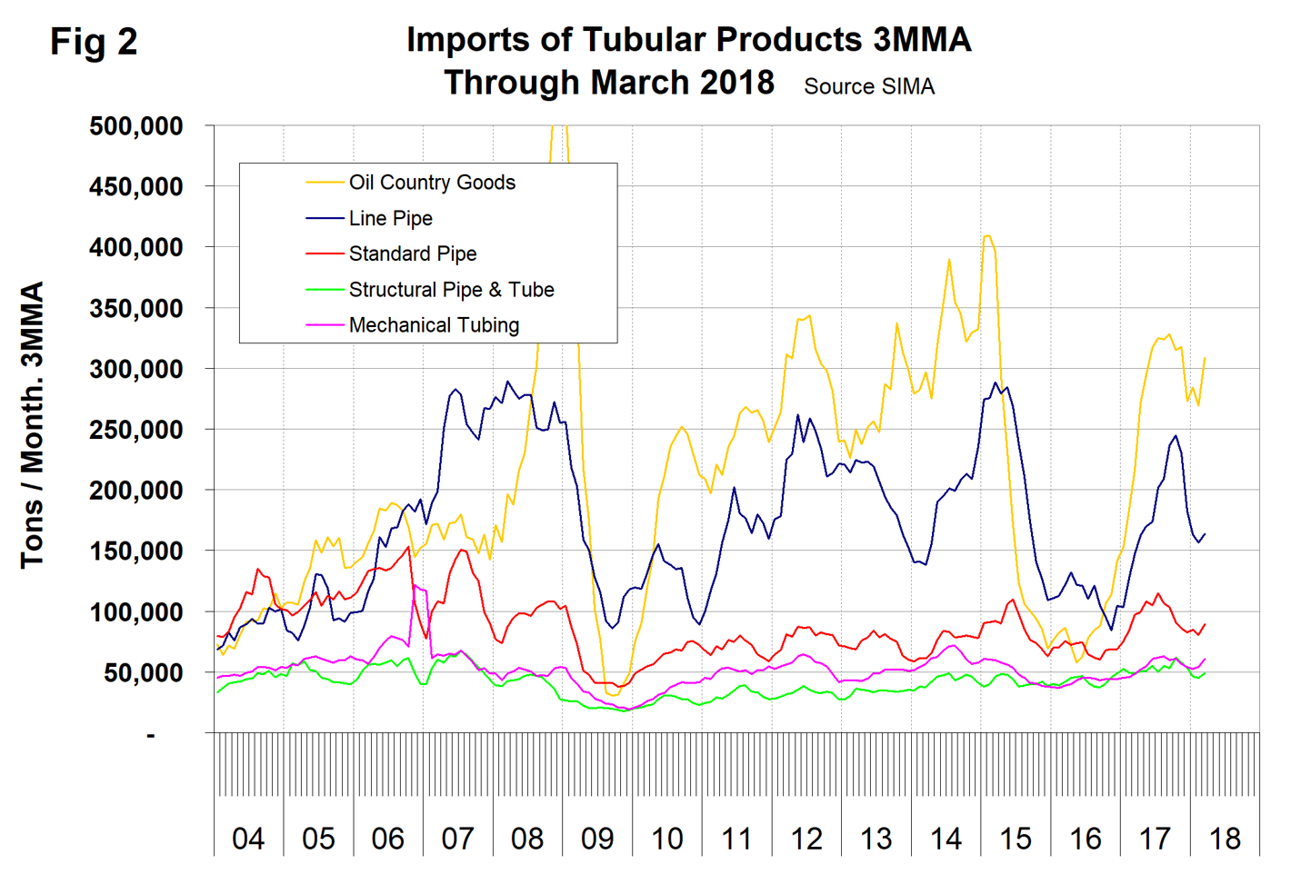 Figure 2 shows the history of tubular product imports on a 3MMA basis since January 2004. OCTD and line pipe have by far the highest volume.