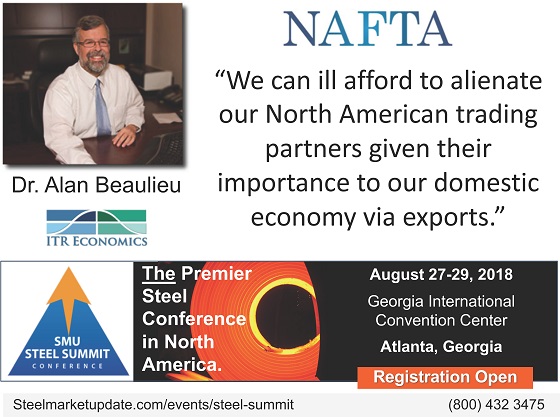 Popular economist Alan Beaulieu of ITR Economics will make another appearance as a keynote speaker for Steel Market Update’s premier event, the 2018 Steel Summit Conference, set for Aug. 27-29 at the Georgia International Convention Center in Atlanta.