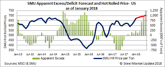 The issue we are having difficulty resolving is what foreign steel flat rolled imports will look like over the next few months. We could see a significant drop-off in imports, which would lower our receipts and shrink the Apparent Excess inventory situation very quickly.