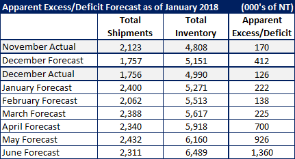 January Forecast Calls for Slight Build in Excess Inventories