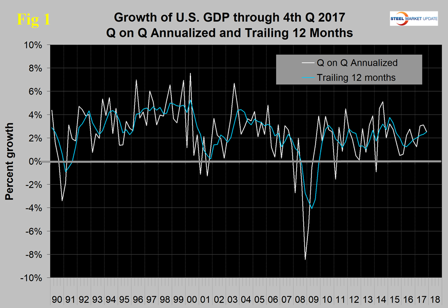 The growth of U.S. Gross Domestic Product in the fourth quarter of 2017 declined from the strong performance of the second and third quarters, but the overall trend is good.