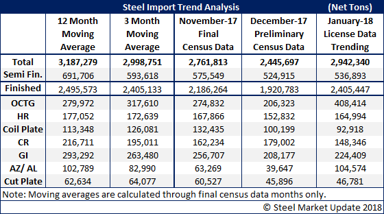 The American Institute for International Steel, which represents foreign steel producers, sees some irony in the numbers. “Steel imports increased sharply under a president who campaigned on pledges to restrict them to protect the domestic steel industry. Those promises appear to have encouraged a rush to import steel before restrictions could be put in place,” said Richard Chriss, AIIS president. Pointing to President Trump’s pending decision on Section 232 trade action, he added, “It would be unfortunate if the administration cites the growth in imports in 2017 as evidence that restrictions are needed, since that seems to have been, at least in part, a Trump-induced increase. Not only does protectionism distort markets, even talk of protectionism distorts them.”