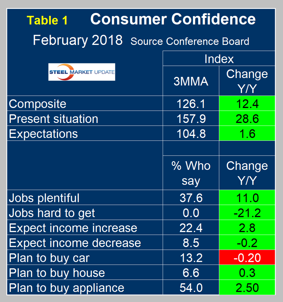SMU Comment: Steel demand is dependent on the growth of GDP, which in turn is strongly influenced by consumer confidence and disposable income. The current consumer confidence report is excellent in both these respects.