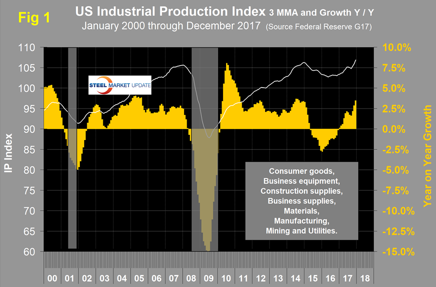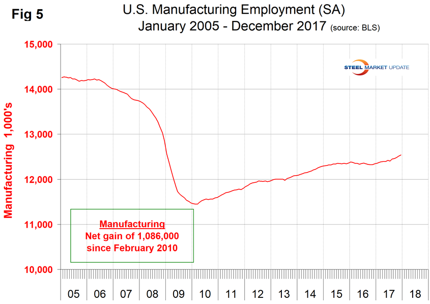 SMU Comment: The ISM index, to which we give the most credence, is at its strongest level since April 2011 and signaling expansion. Auto assemblies and supplier industries are slowing in NAFTA and the U.S. and Canada are losing share to Mexico. Manufacturing added 196,000 jobs in 2017 with a particularly strong fourth quarter, but there has been virtually no productivity improvement in the last four quarters. The industrial production index and new orders for durable goods have positive growth. On balance, these seven measures are positive and point to a strong first half for 2018.