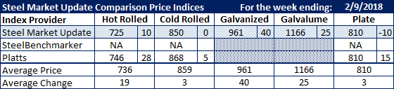 SMU reported plate prices as being $10 per ton lower than the prior week. Platts increased their plate pricing to $810 per ton. Both indices are now based on delivered pricing.