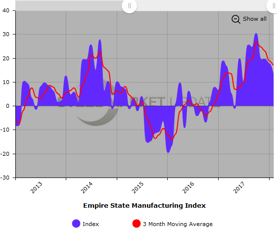 The Empire State Manufacturing Survey is published monthly by the Federal Reserve Bank of New York. A reading above zero indicates growth.