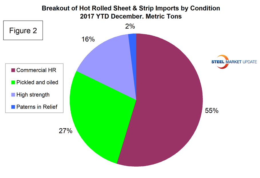 Figure 2 does the same by condition—commercial hot rolled, pickled and oiled, high strength and patterns in relief.