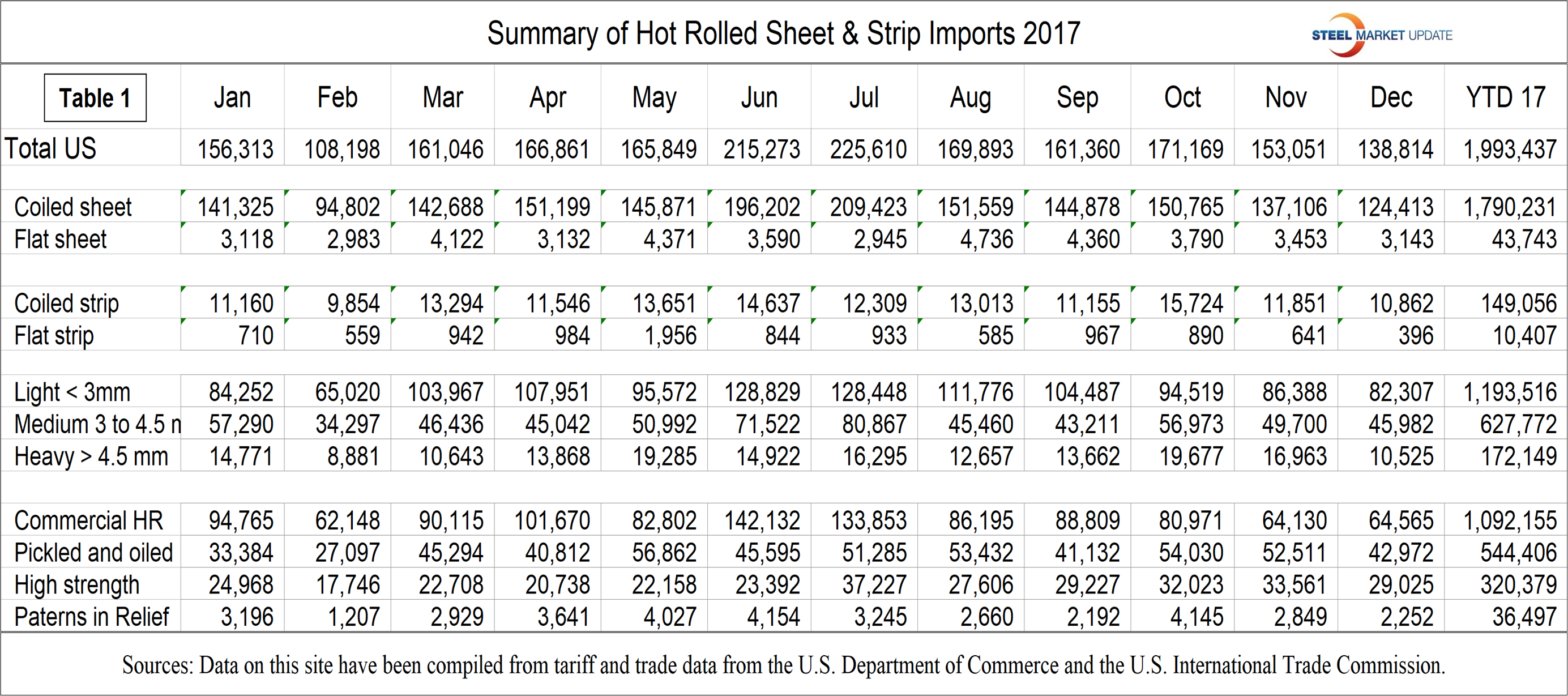 Using U.S. International Trade Commission (USITC) data, SMU takes the import tonnage and breaks it down into sheet and strip, and whether it was in coil or leveled. Then it separates three thickness ranges, it identifies how much was P&O, how much was high strength and how much had patterns in relief.