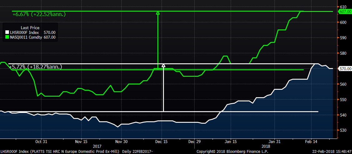 TSI North European HRC Index (white) & TSI ASEAN HRC Index (green)