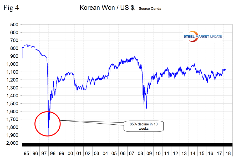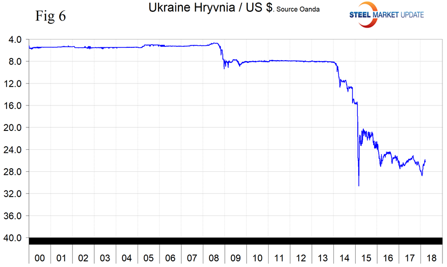 In each of these reports, we comment on several of the 16 steel and iron ore trading currencies listed in Table 1 and over a period of several months will describe the history of all of them. Charts for each of the 16 currencies are available through Feb. 23 for any premium subscriber who requests them.