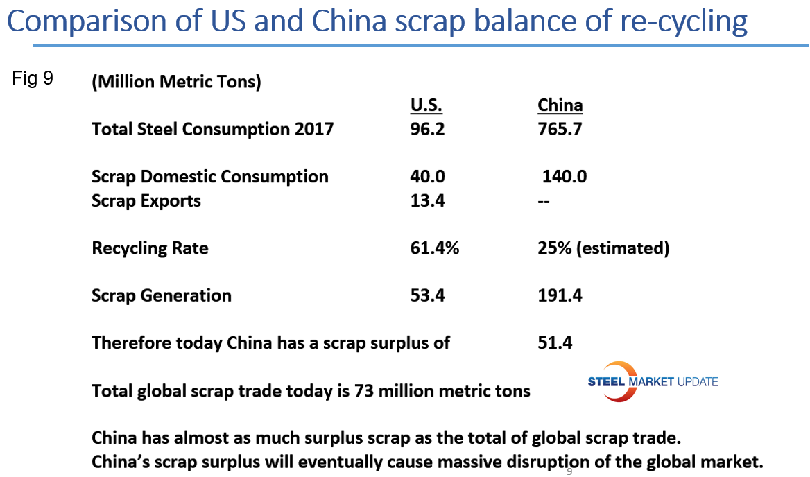 Of Steel Market Update’s conclusion, Harris is in complete agreement: China has more surplus scrap than the total of global scrap trade, which sets the stage for an eventual massive disruption of the global scrap market.