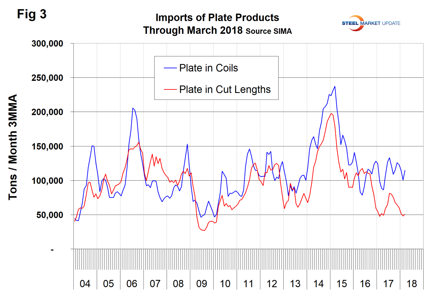 In Q1 2018, steel sheet product imports increased and plate products decreased compared to Q4 2017.