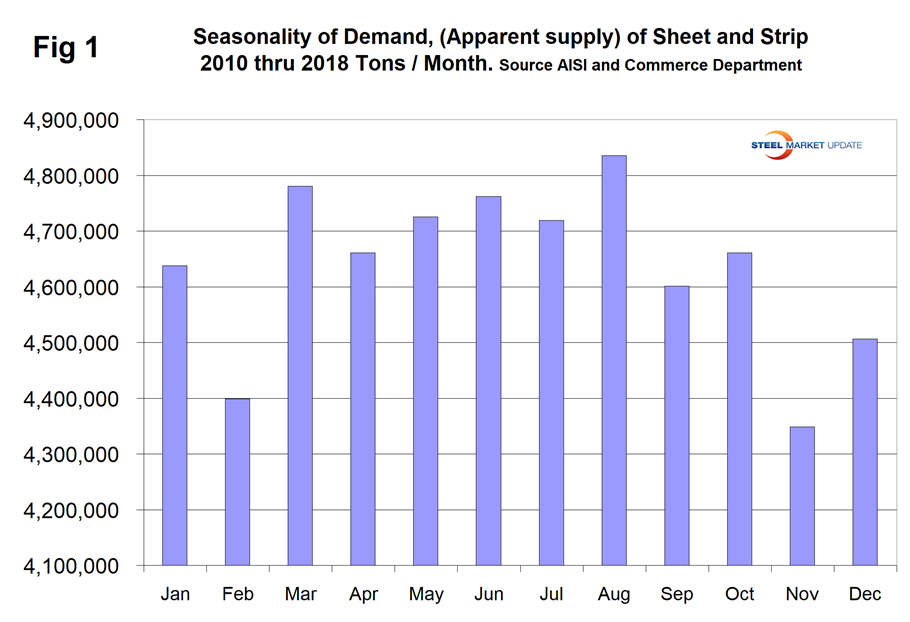 Apparent supply is a proxy for market demand. Demand momentum for sheet products in total was negative in the three months through February, but individual products varied. The overall negativity was partly a seasonal effect; on average since and including 2010, sheet supply in February has been down by 5.2 percent because of reduced days. In 2018, the decline was 7.0 percent, therefore a little worse than normal for this time of year.