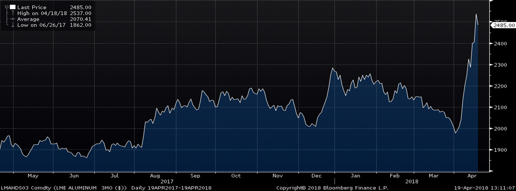 The U.S. sanctions against Russian oligarch Oleg Deripaska has resulted in his company, Russian aluminum giant United Co. Rusal (Rusal) losing its ability to accept payment in dollars. The sanctions have essentially blocked Rusal, the world’s second largest aluminum producer, from the global financial system. This has immediately halted all deliveries and resulted in a major global aluminum supply shock. The reaction has been powerful with the three-month aluminum future gaining as much as 35 percent in less than two weeks. Not only does global aluminum supply lose Rusal’s production, but also the orders on Rusal’s books all go poof and those orders need to be placed elsewhere, exacerbating the short-term supply shock. Last week, Glencore announced force majeure on 50,000 tons of aluminum expected from Rusal. While this could lead to incremental steel demand to substitute for aluminum in short supply, there is something much larger afoot.
