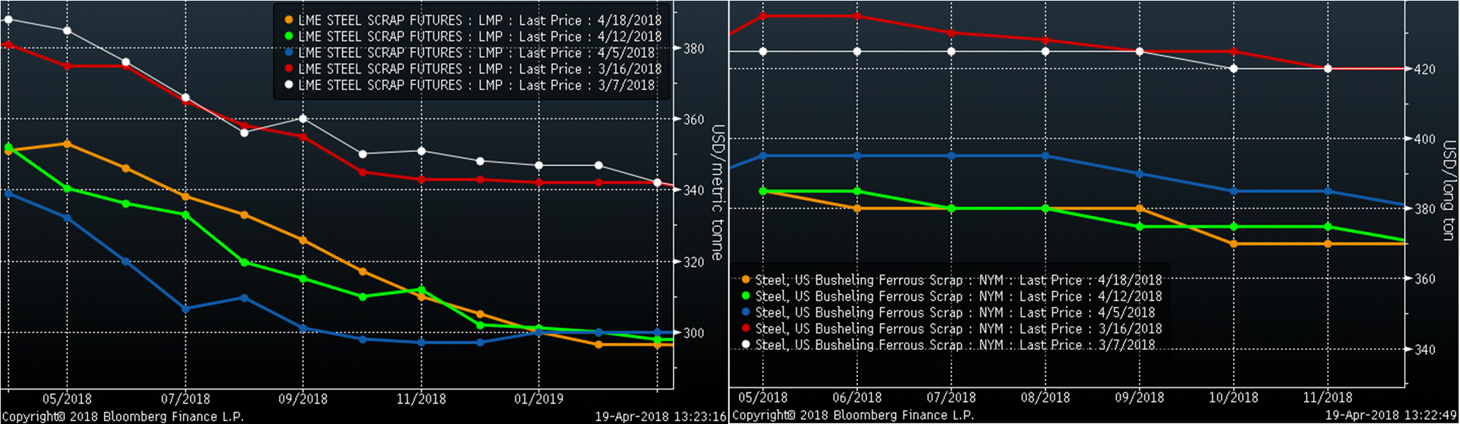 LME Turkish Scrap (left) & CME #1 Busheling (right) 2nd Month Rolling Future