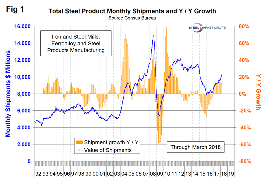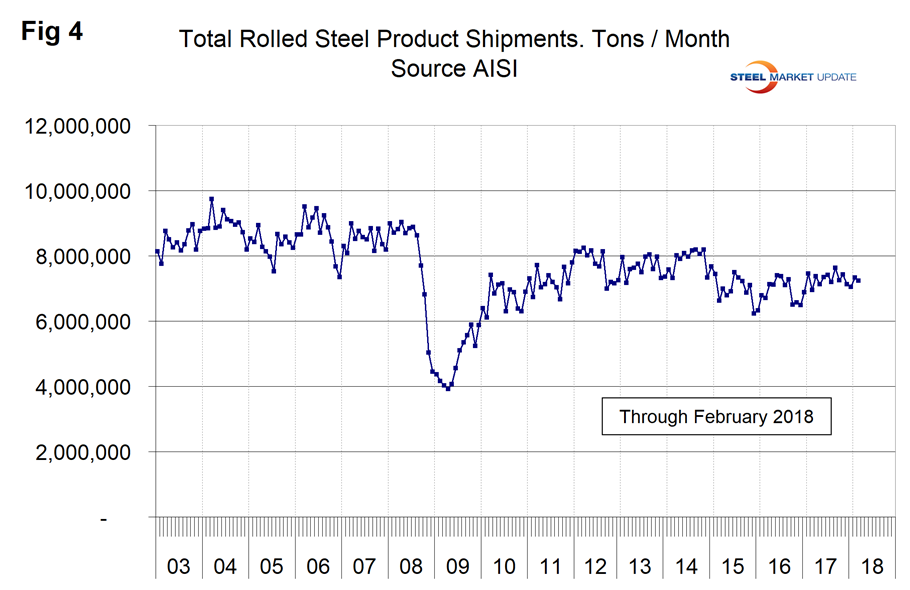 According to American Iron and Steel Institute data, total steel mill shipments increased by 13.1 percent from January 2016 through January 2018 and by 2.4 percent in January 2018 year over year. Is this believable?