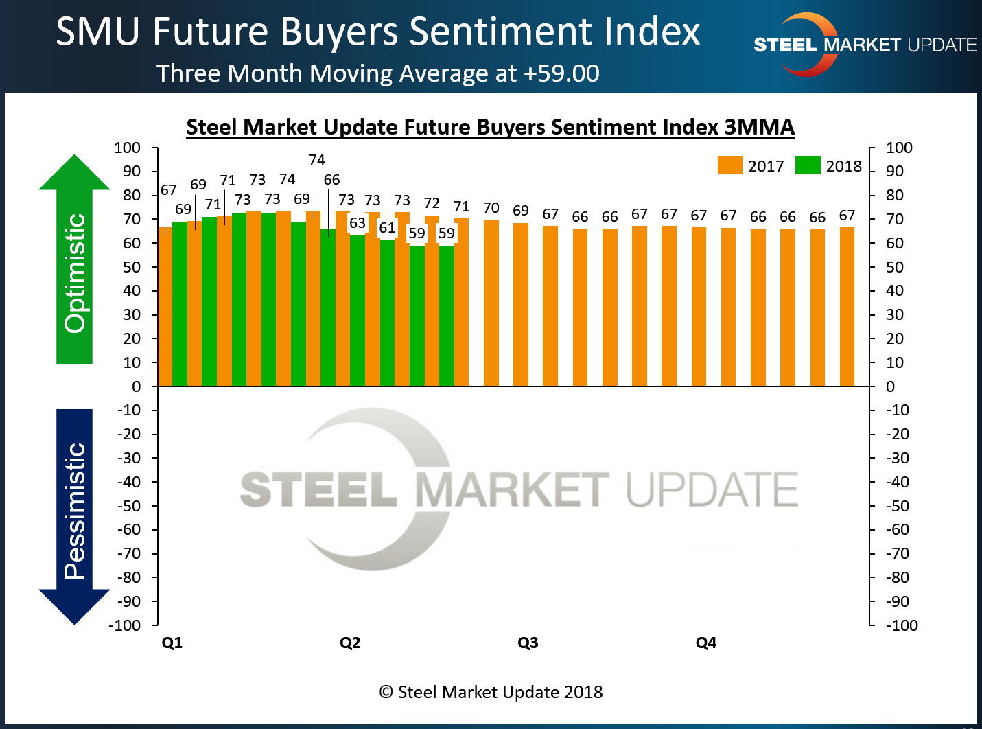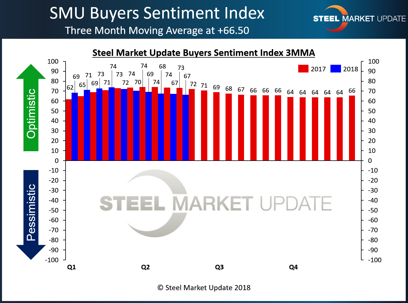 SMU Steel Buyers Sentiment Index is a measurement of the current attitude of buyers and sellers of flat rolled steel products in North America regarding how they feel about their company’s opportunity for success in today’s market. It is a proprietary product developed by Steel Market Update for the North American steel industry.