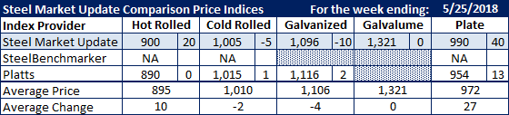 SteelBenchmarker did not report prices this past week as they only report twice per month.