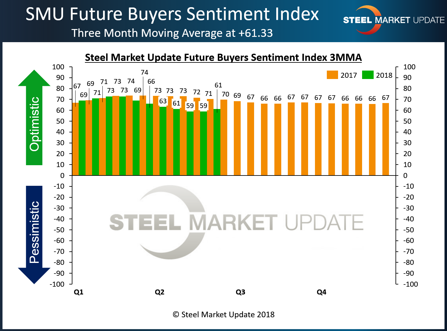 SMU Steel Buyers Sentiment Index is a measurement of the current attitude of buyers and sellers of flat rolled steel products in North America regarding how they feel about their company’s opportunity for success in today’s market. It is a proprietary product developed by Steel Market Update for the North American steel industry.