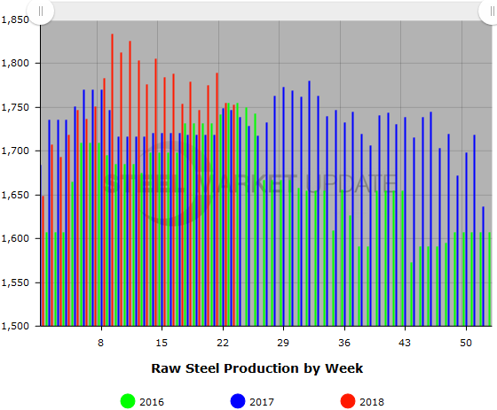 The raw steel production tonnage provided in this report is estimated. The figures are compiled from weekly production tonnage from 50 percent of the domestic producers combined with monthly production data for the remainder. Therefore, this report should be used primarily to assess production trends. The AISI monthly production report provides a more detailed summary of steel production based on data supplied by companies representing 75 percent of U.S. production capacity.