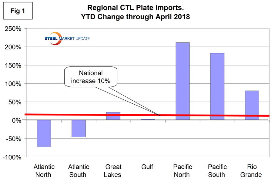 There are big differences in the year-to-date increase of cut-to-length plate imports on a regional basis.
