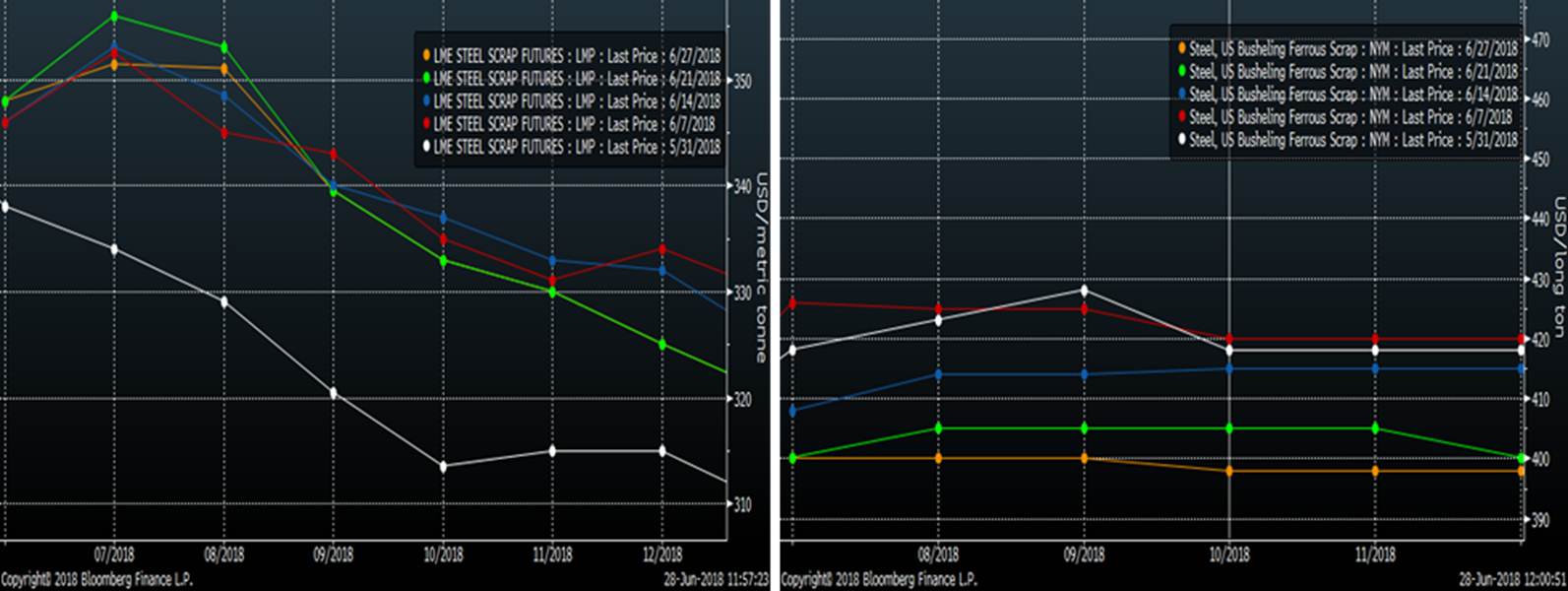 LME Turkish Scrap (left) & CME #1 Busheling (right) Futures Curves