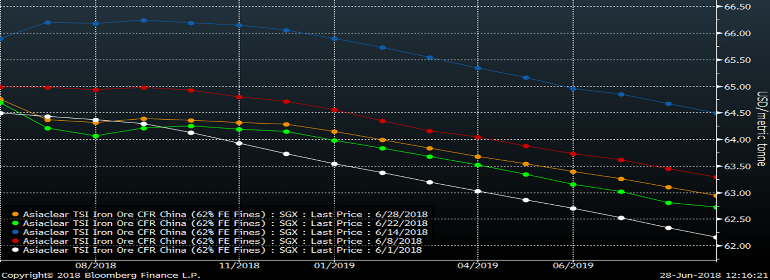 The SGX iron ore futures curve has flattened dramatically over the past month, with the back of the curve moving higher.