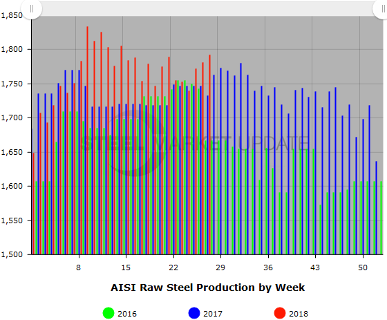 The raw steel production tonnage provided in this report is estimated. The figures are compiled from weekly production tonnage from 50 percent of the domestic producers combined with monthly production data for the remainder. Therefore, this report should be used primarily to assess production trends. The AISI monthly production report provides a more detailed summary of steel production based on data supplied by companies representing 75 percent of U.S. production capacity.