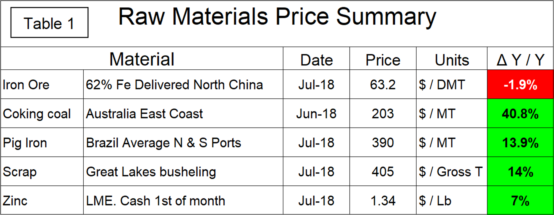 Raw Material Prices: Scrap, Zinc, Iron Ore, Coke, Pig Iron