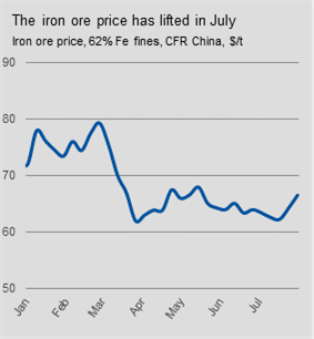 Iron ore prices have jumped from about $62 to $66 per ton in the past month, but the change is only temporary, said CRU senior analyst Erik Hedborg. “Ore prices are slightly higher in July, but we expect them to continue to fall for the rest of the year.”