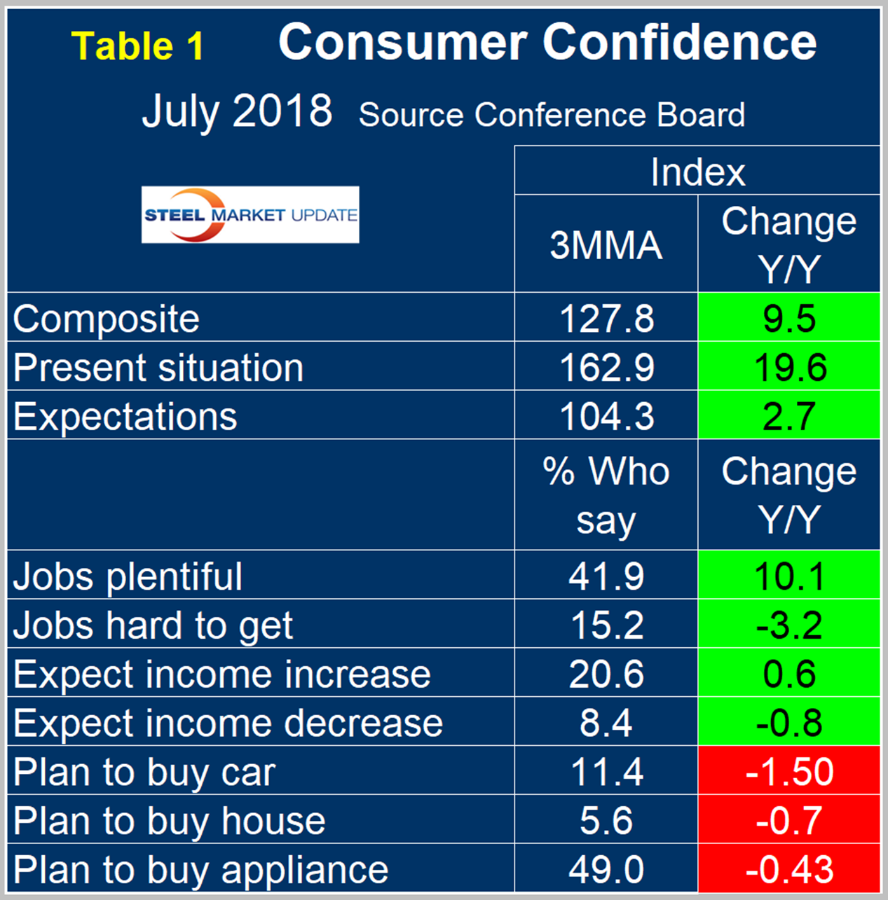 SMU Comment: Steel demand is dependent on the growth of GDP, which in turn is strongly influenced by consumer confidence and disposable income. The current consumer confidence report continues to be good in both these respects.