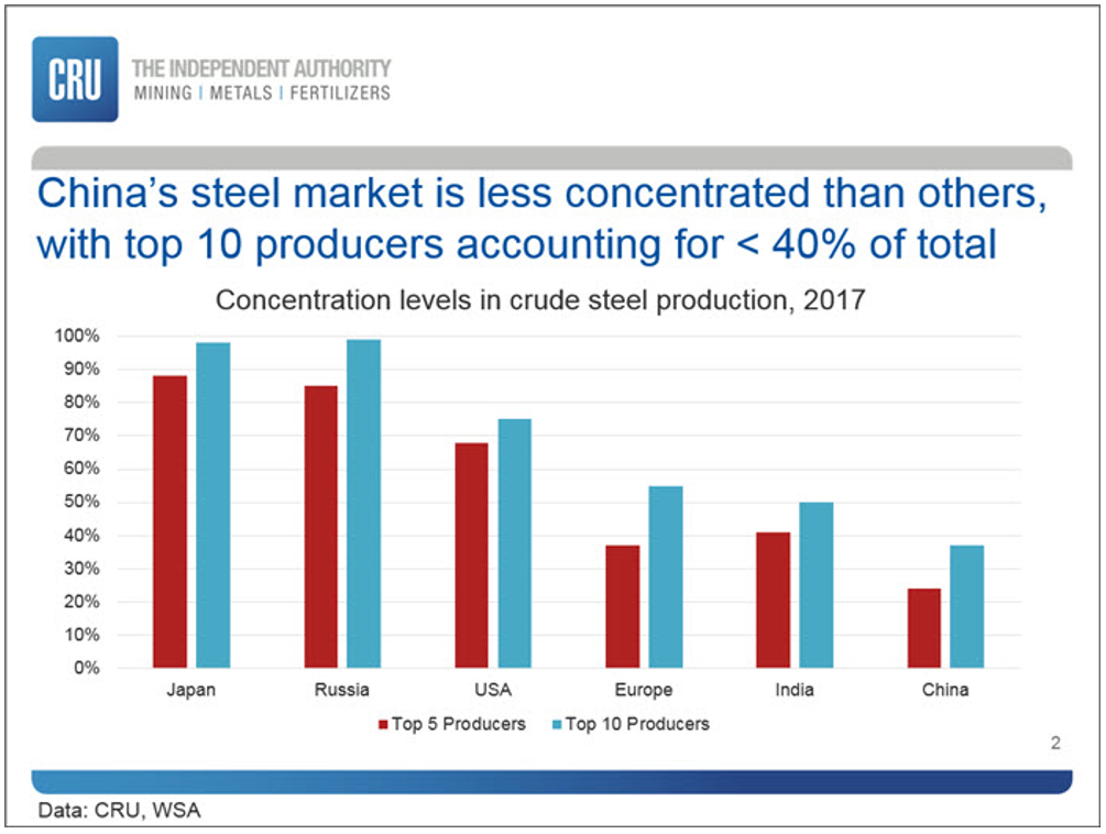 As a result, CRU believes that levels of consolidation in the 40-50 percent range are entirely possible. There may be surprises in store as this comes about, and this is likely to have important implications for the steel industry in China and beyond.