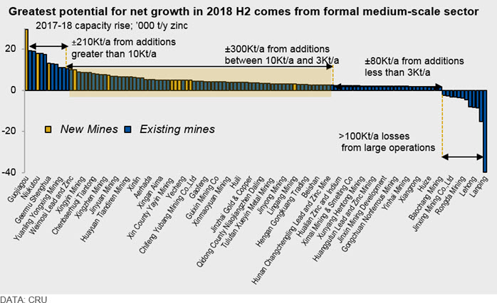 Last year was a difficult one for Chinese mine supply, with CRU’s roundup for output at 4.17 Mt (up just 2 percent year-on-year) despite significant gains in the zinc price. Environmental restrictions left many operations partially idled or shut across the country as inspections took place. With strict environmental enforcement expected to remain in place over the medium term, an increasingly important question with respect to the global concentrate (and metal) market remains to what extent Chinese mine supply can rebound this late in the zinc price cycle. By the zinc price peak in February 2018, Chinese miners had enjoyed nearly 24 months of margin expansion. Despite this, environmental inspections and restrictions have held back mine supply growth. Our roundup of major Chinese operations in 2018 H1 support a mixture of positive and negative growth stories with our estimate for H1 growth up 2 percent year-on-year. More detailed analysis on our Chinese mine supply projections is provided in the Chinese mine supply section of our July Zinc Market Outlook.