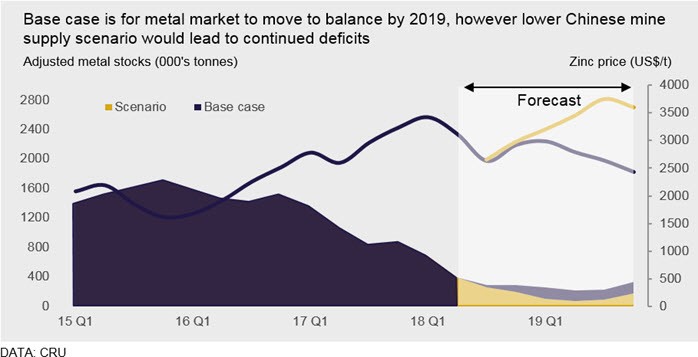 • The metal market to return to balance in 2019, putting downward pressure on zinc prices. Treatment charges to rise sharply.