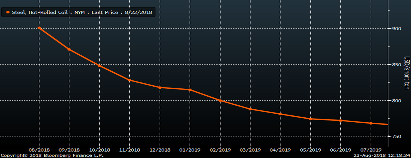 One question we have been discussing in the halls of Flack Global Metals is what would the HRC price be if there were no tariffs? Our guess would be $680-700. Tariff adjusted, that comes out to $850-875. Along that line of thinking, the curve offers some interesting opportunities to buy well below those prices in the not-so-distant future. Going back to the curve on July 5th above, it looks like that was the realization that put a floor in the futures market.