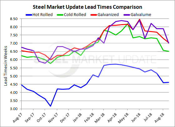 At 7.00 weeks, Galvalume lead times are down from 7.89 weeks in mid-July.