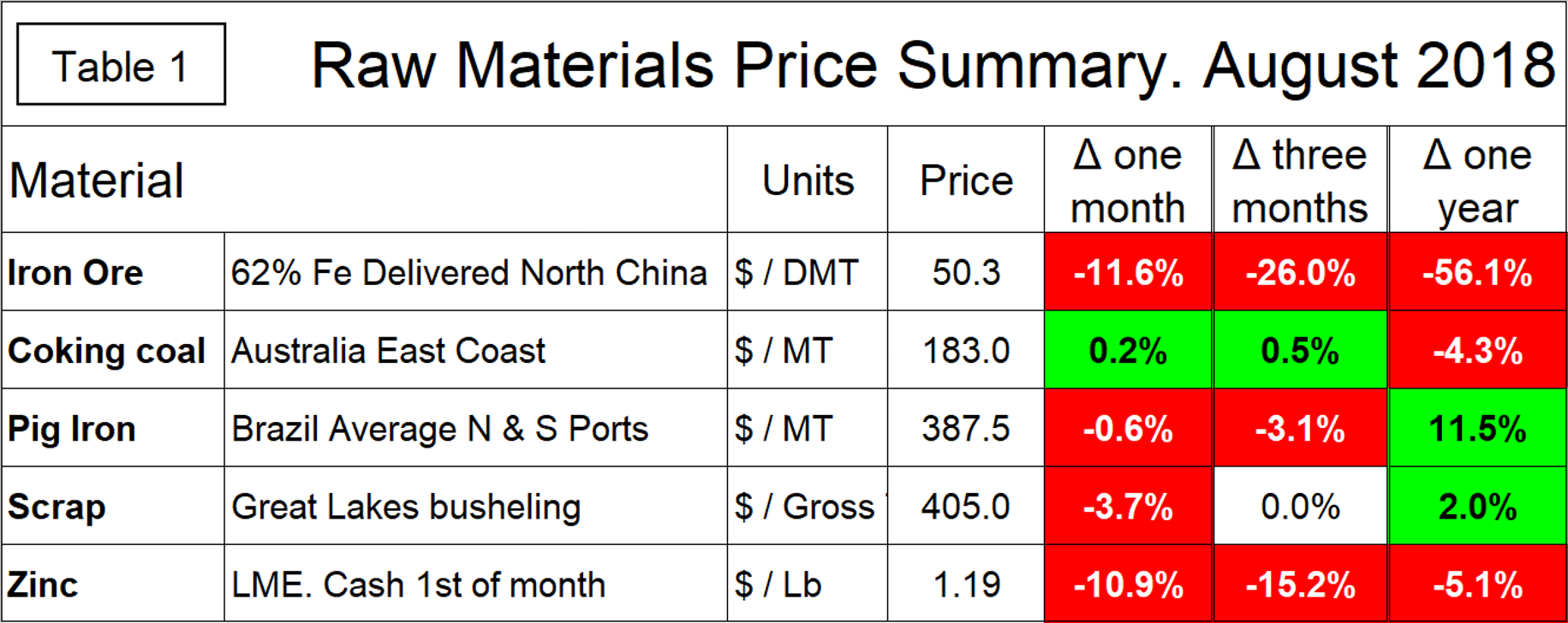 Raw Material Prices: Iron Ore, Coking Coal, Pig Iron, Scrap and Zinc
