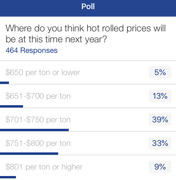 Results from live polling during Steel Market Update’s Steel Summit Conference this week in Atlanta produced a few surprising results.
