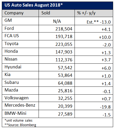 Softer sales were expected in August due to higher interest rates, increasing fuel prices, and elevated production costs resulting from steel and aluminum tariffs. Average vehicle selling price for August was estimated at $31,836 by market research firm J.D. Powers.